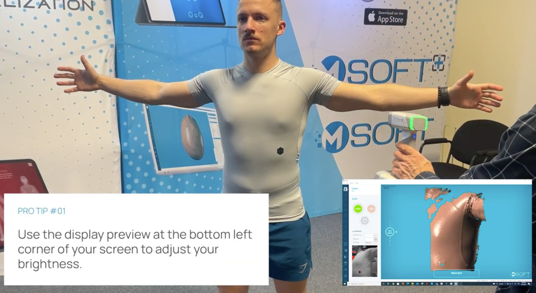 Scanning tips with EinScan H. To perfectly scan a plantar surface with the EinScan H scanner, follow these pro tips. 1 – Use the display preview to adjust your brightness. 2 – Your scan must be as bright as possible to avoid red pixels. 3 – MSoft ...