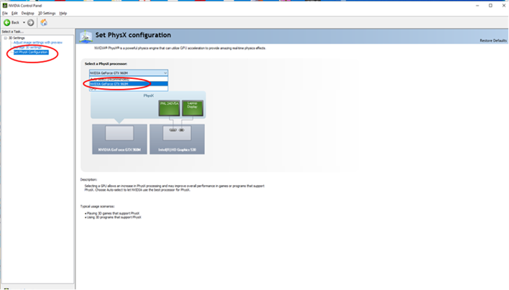 5. Sélectionner PhysX Configuration. Sélectionner votre carte grapique Nvidia